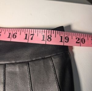 Lane Bryant chic black A-line faux leather pre-loved skirt. Sleek pleated design. Versatile and stylish. Waist measures 19 inches laying flat. Length measures 30 inches from waist to hem. Material is 95% polyester.
