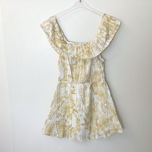 Cottagecore, beachcore, coastal granddaughter, sun dress, botanical floral, yellow aesthetic, off the shoulder, ruffle neck, boho, bohemian, summer staples, vacation wear, resort wear, feminine, dainty, breezy, lightweight, picnic aesthetic, festival fashion, dopamine dressing, southern chic