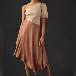 Anthropologie Faux Leather One Shoulder Asymmetrical Midi Dress Size 2 NWT