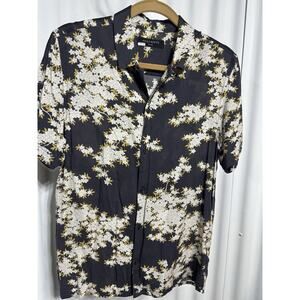 AllSaints Coal Black Ivory Bloom Floral Shirt Honey Leaf Resort Style Mens SZ S