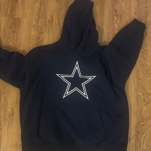 Dallas Cowboys hoodie in navy with star on front and 'DALLAS' written across the back. Unisex