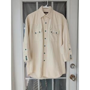 Stetson Men's M Turquoise Hex Snap Western Denim 3/4 Sleeve Cowboy Ranch Shirt