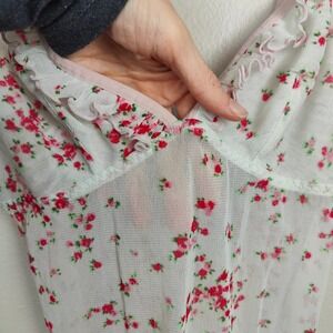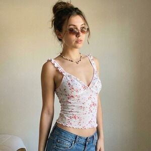 Vintage Y2K EDC by Esprit Tank Top Womens Small White Floral Mesh Ruffle Trim
