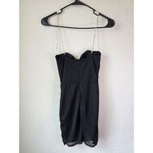 White Fox Boutique Black Mini Dress with Chain Straps and Rhinestone Detail