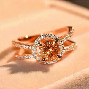 Beautiful 14k Rose Gold Over Sterling Silver 2ct Champagne Diamond Halo Ring