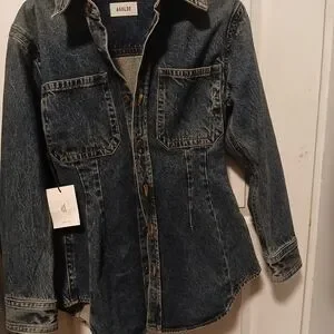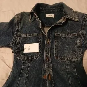 Stylish long sleeve dress with button-up front. Features chest pockets and a classic collar.