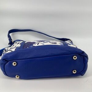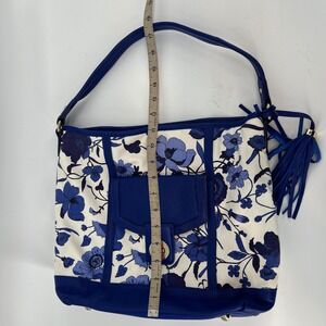 Isaac Mizrahi Floral Hobo Bag Shoulder Bag Blue White Canvas and Leather Tassel