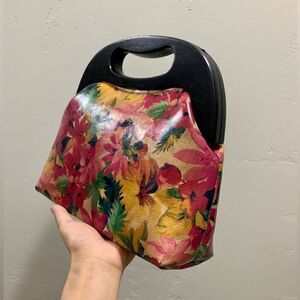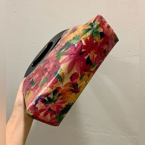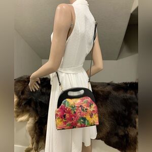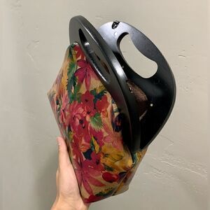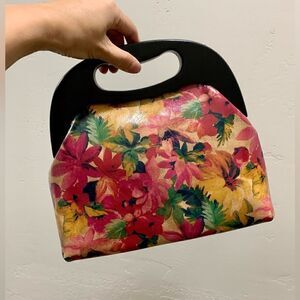 Handmade Genuine Leather Floral Print Wooden Frame Bag & 2 Strap Styles