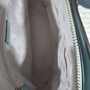 So that was the AI description. This is MY description. Pebbled leather, Kate Spade large crossbody purse/handbag. Light blue, (aka Cloudmist,) with 3 compartments that are super roomy and can probably hold your booze, your weed, your meds, your phone, and all the lipstick and breath mints you'll ever need. (or approximately 1.7 average sized raccoons.)