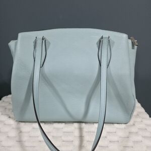 Elevate your style with this elegant light blue leather tote bag from Kate Spade. Perfect for any occasion, this bag combines functionality with a chic design.