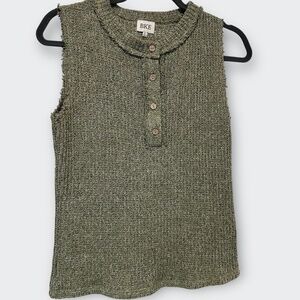 New BKE Olive Green Ribbed Knit Henley Tank Top S | Utility Athleisure Minimalist Buckle