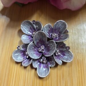 Add a touch of elegance with this stunning floral brooch. Featuring beautiful purple petals with a silver finish, this piece is perfect for any occasion.