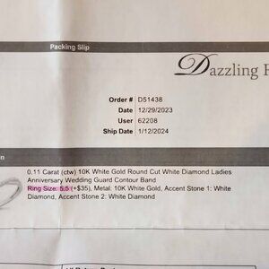 Size 5.5 contour diamond wedding band in 10k white gold. Tag was removed for the wedding but I ended up going with a different style band. It's been sitting in my jewelry box and I'm hoping it's the perfect piece to compliment someone else's ring! 💍