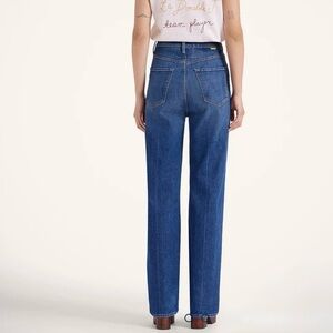A collaboration between La Double J and MOTHER that marries Italian maximalism with California cool. Made from semi-rigid SUPERIOR denim in a classic blue, the jeans feature a loose fit, wide leg and 31” inch inseam with a clean hem. And that tiny yellow dragonfly embroidered onto the front pocket? Consider this symbol of joy and transformation a little good luck charm.