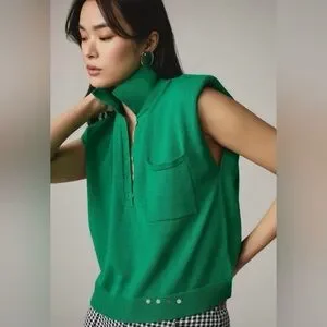 NWT Anthropologie Green Sleeveless Knit Polo Sweater Top Preppy Sporty Size S