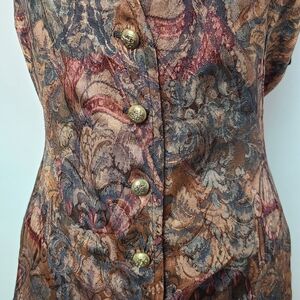 Studio Femme women's brown vintage vest that features a unique pattern and button details, perfect for any occasion.