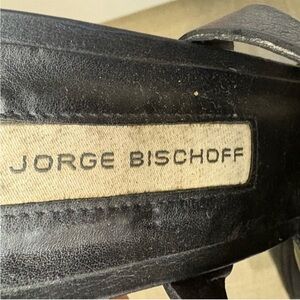 Jorge Bischoff Black Leather Block Heel Sandals Gold Accent Size 36