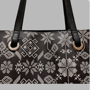 VINTAGE RARE Pineda Covalin Tote Floral White Snowflakes Print