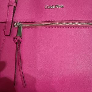 Calvin Klein Ash Tote Bag Faux Saffiano Leather Hot Pink Tote Bag Purse