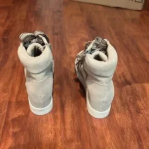 Step out in style with these chic gray high-top sneakers. Perfect for casual outings, these shoes offer both comfort and fashion.