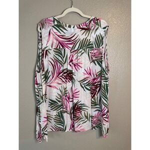 Catherines 4X Tropical Palm Print Rayon Sleeveless Blouse Boho Resort Top