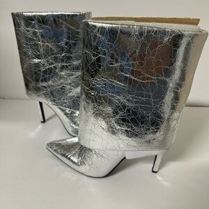 Shine with these stunning silver stiletto ankle boots. Perfect for a night out or adding a touch of glam to any outfit.