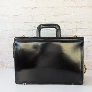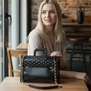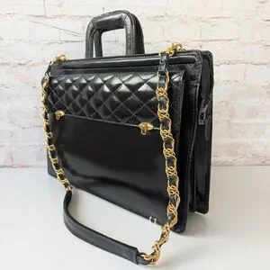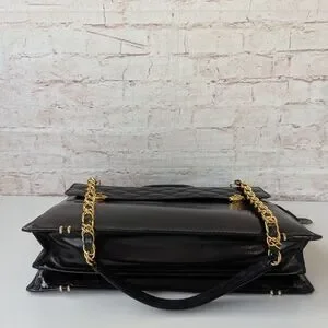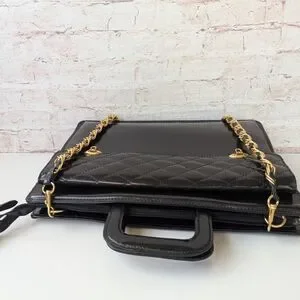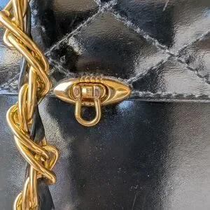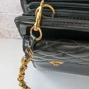 Black Quilted Leather Bag with Gold Chain