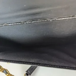Elegant black quilted leather bag featuring a stylish gold chain strap. Perfect for any occasion.