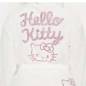 Adorable Hello Kitty robe with pink accents. Soft and comfortable for kids.