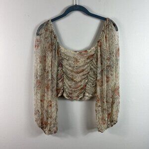 Free People Lilia Ruched Cropped Top Size S Ivory Floral Boho Coachella Party