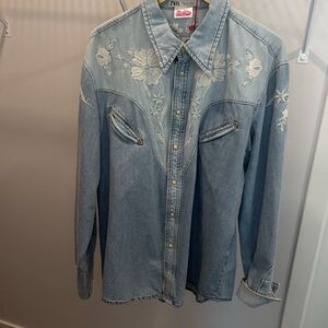 Zara x Barbie Men’s Light Denim Embroidered Western Snap Button Shirt Large NWT