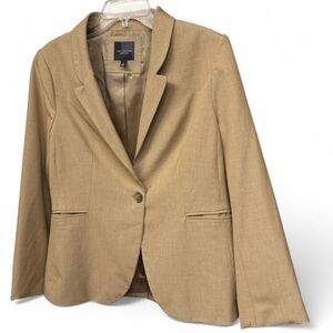 Sophisticated camel blazer with a single-button closure. Ideal for professional settings.