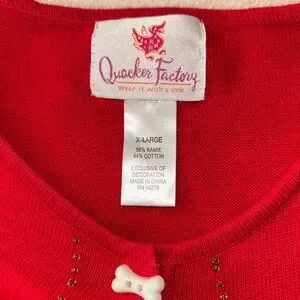 Vintage Quacker Factory Red Cardigan with Puppy Dog Embroidery XL Bone Buttons