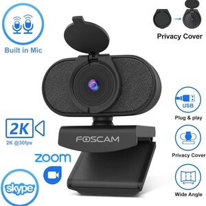 Foscam 2K 4MP Webcam with Dual Noise Reduction Microphones, USB Web Cam with Auto Light Correction for Desktop PC Computer Laptop, Windows Mac OS, Includes Flexible Mount & Privacy Cover, W41
