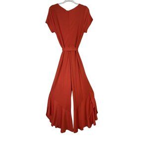 Isaac Mizrahi Live Ruffle Orange Belted Jumpsuit Short Sleeve Size Small Boho