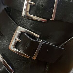 man made PU, three buckle-silver hardware