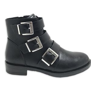 NWT Time and Tru Women's Three Buckle Bootie Faux Leather 6.5