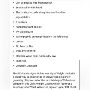 Stylish white jacket with Michigan logo. Features a hood and front pocket. Ideal for everyday wear.