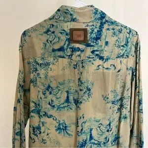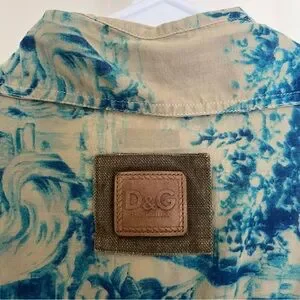 Vintage 1998 Dolce & Gabbana Toile De Jouy Beige & Bleu Shirt Size L