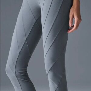 PRICE FIRM NO OFFERS! NWT ALO yoga Alosoft Sunray legging size M color is steel grey. These gorgeous leggings have sleek contrast seams, a light compression fit and buttery-soft fabric make the Sunray Legging perfect for your next workout or lounging in