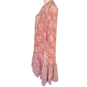 Cleobella Midi Dress Size S to L Tiered 3/4 Sleeves Terracotta Cotton Boho