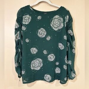 Ann Taylor Factory Green Floral Print Long Sleeve Blouse Top Size Medium