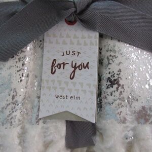 WEST ELM ~ COZY TEXTURE METALLIC BORDER THROW IVORY/SILVER