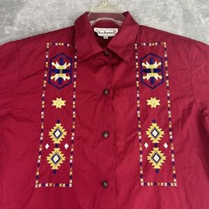 Bechamel Blouse M Red Native American Embroidery Metal Indian Head Buttons VTG