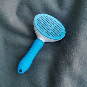 Self-cleaning grooming brush for dogs and cats with one-push button for quick hair removal. Gently removes loose fur, tangles, and dirt without irritating the skin.