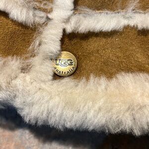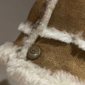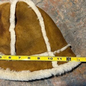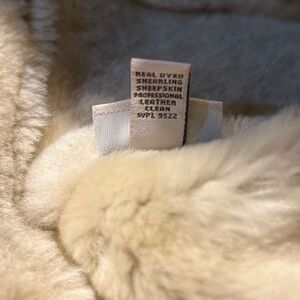 This is so stylish and warm! It is UGG brand. shearling. One size. No issues. Smoke free home
