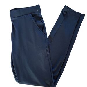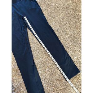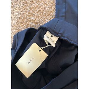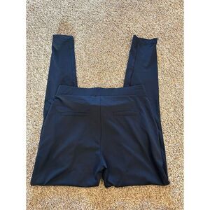 These dress pants are designed for women and come in a regular size medium. They feature a straight leg style and are made from stretch fabric for comfort. The pants are navy blue, have a pull-on closure, and include functional pockets. Suitable for workwear, they are machine washable and appropriate for all seasons. The pants are new with tags.