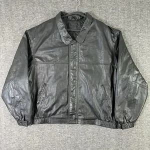 United States MARINE CORP EMBOSSED Black Leather JACKET Men's 3XL Made IN USA