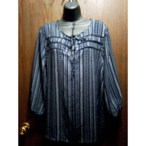 Como Vintage Blue Striped Boho Tie Neck Blouse XL JC373