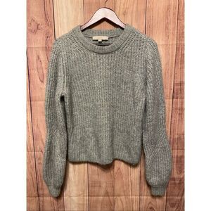 Loft Small wool blend knit sweater grey/green women’s top winter cozy
